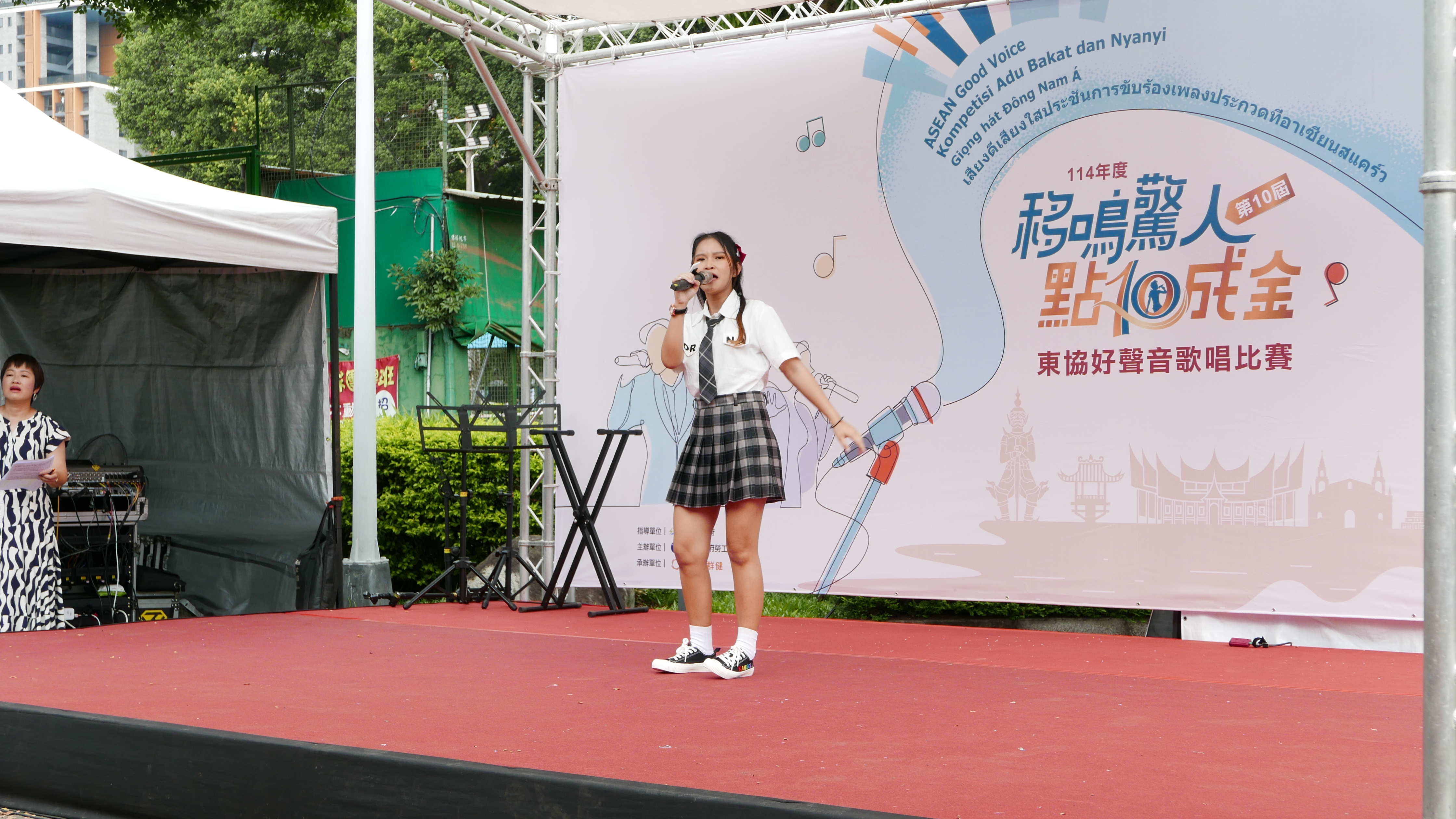 友善城市、熱情台中!台中市政府勞工局於昨(14)日下午在台中公園舉辦「114年度東協好聲音歌唱比賽」,現場吸引近千位市民與移工朋友共襄盛舉,以及來自各國的美好歌聲及活潑有趣的法令知識,帶領市民度過充實的週末時光。台中市持續辦理移工多元友善活動,東協好聲音歌唱比賽今年已邁入第10屆,也象徵10年有成的跨國交流舞台。
