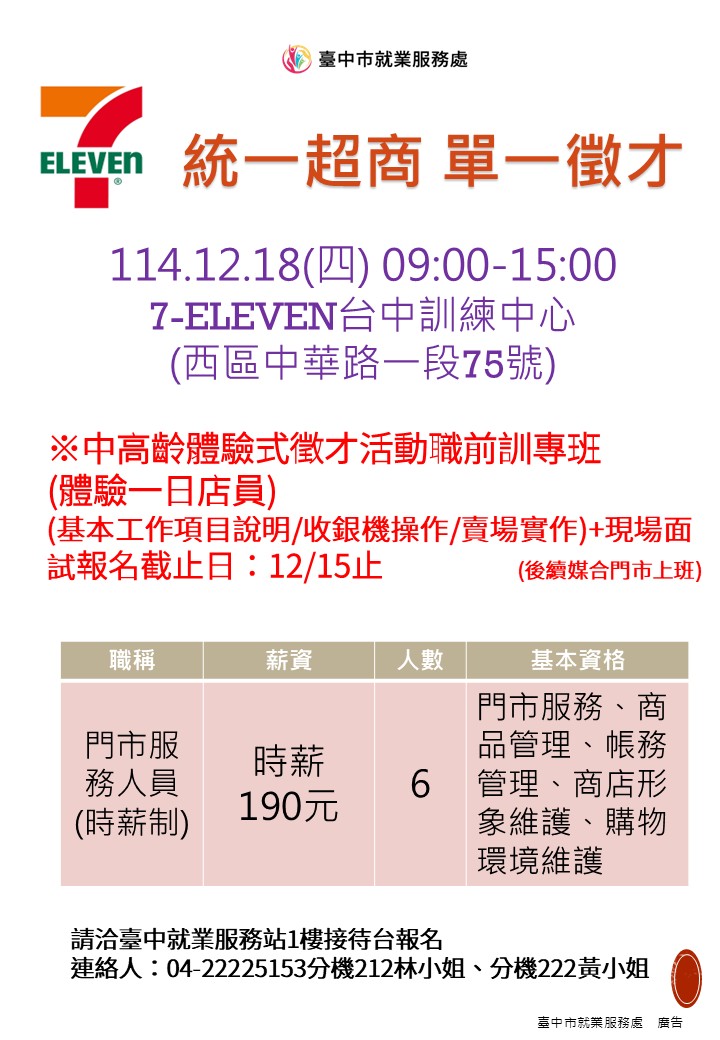 聯絡人:臺中就業服務站