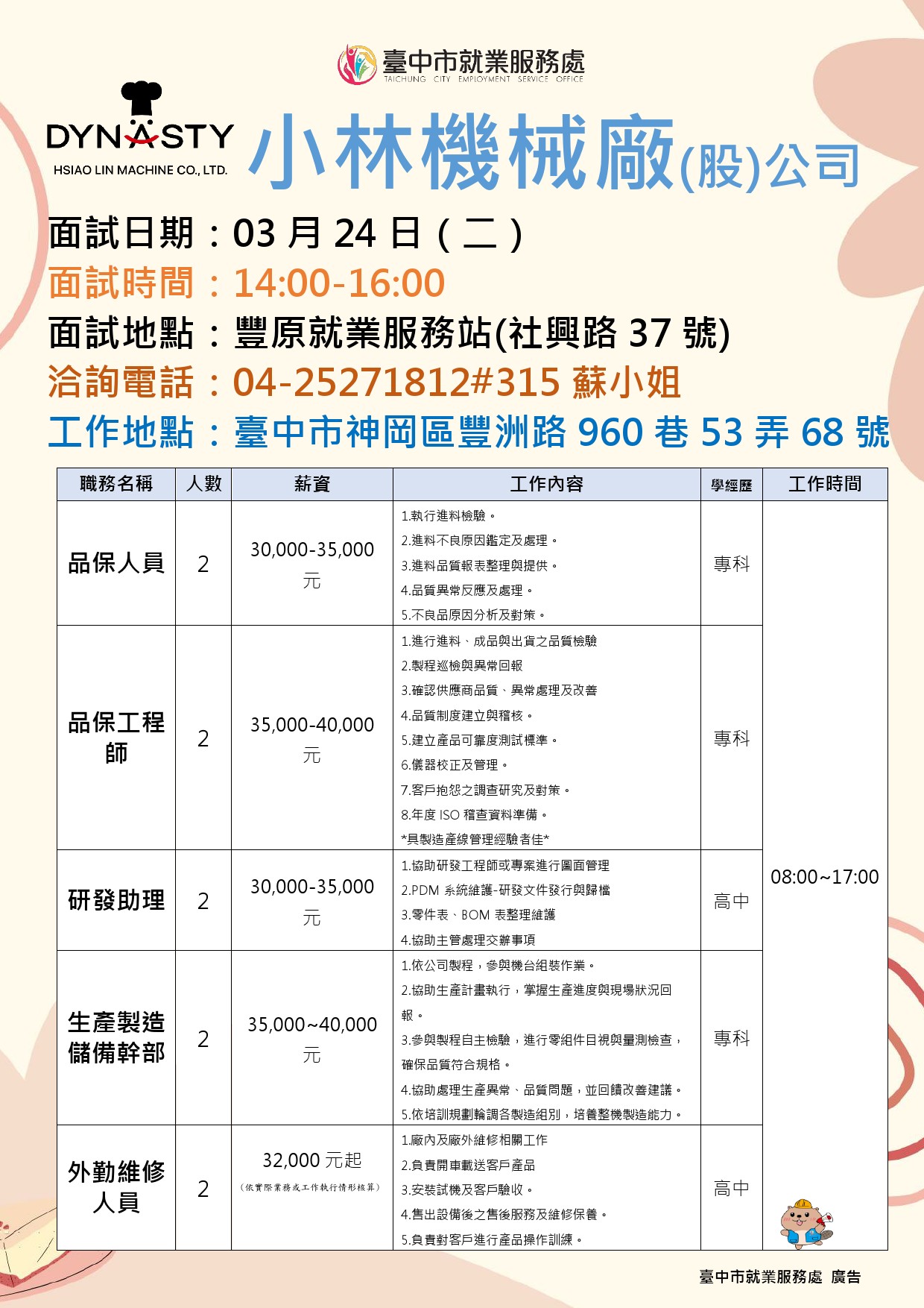 03/24(二)小林機械廠股份有限公司單一徵才活動