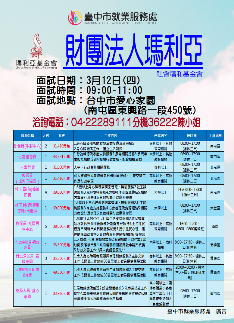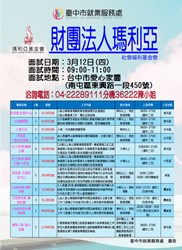 03/12(四)財團法人瑪利亞社會福利基金會單一廠商徵才活動
