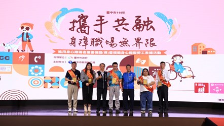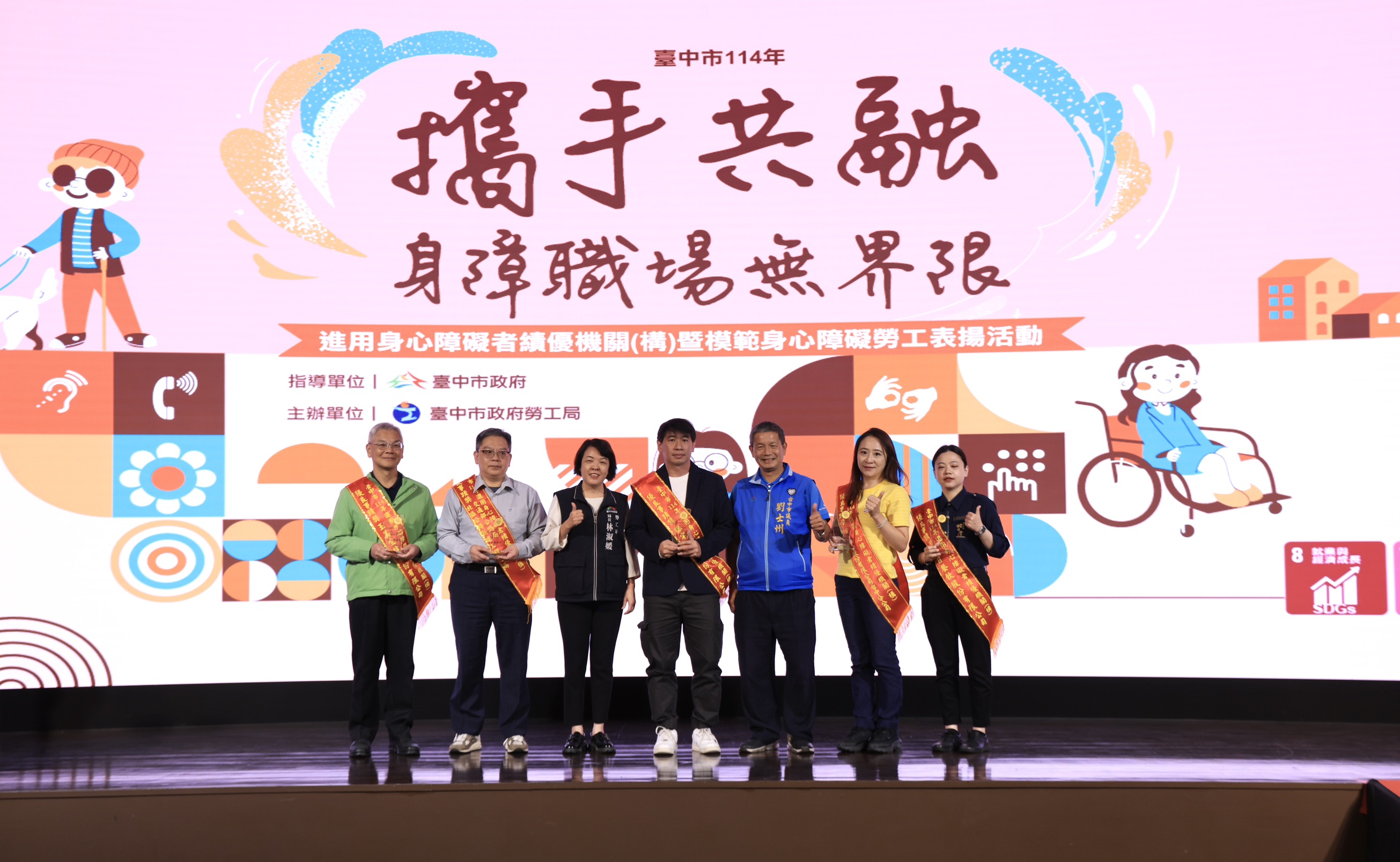 為鼓勵事業單位積極進用身心障礙者,並肯定身障朋友在職場上的堅持與貢獻,台中市政府勞工局於昨(27)日舉辦「中市114年進用身心障礙者績優機關(構)暨模範身心障礙勞工表揚活動」,頒發包括楷模獎1名、優良事蹟獎10名、模範身心障礙勞工10名、公益採購獎10名,以及職場體驗友善廠商3名,共計34個單位及個人獲獎,場面溫馨感人。