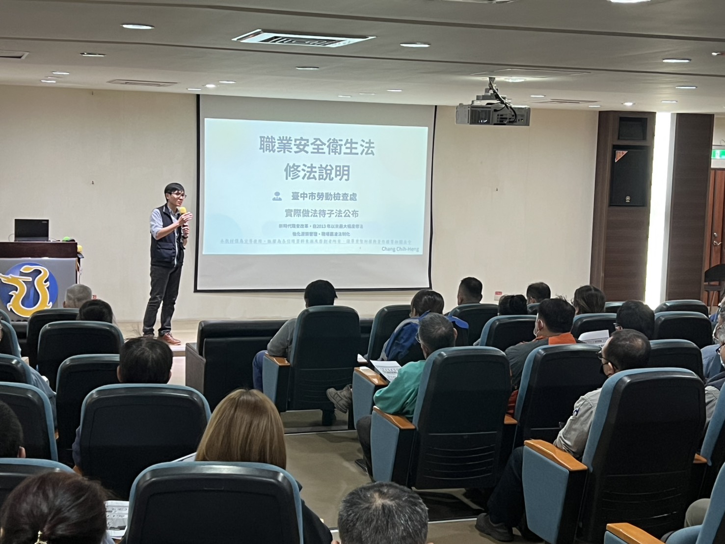 為協助企業及早掌握職業安全衛生法修法重點、順利銜接新制,台中市政府勞工局今(23)日攜手本市「安全衛生家族」成員,共同辦理「職業安全衛生法修法重點暨製造業實務宣導說明會」,由核心企業中龍鋼鐵股份有限公司擔任領頭羊,邀集鋼鐵、金屬加工、機械設備等製造產業代表及安衛主管踴躍參與,展現產業界對落實新法、提升職場安全的高度共識。