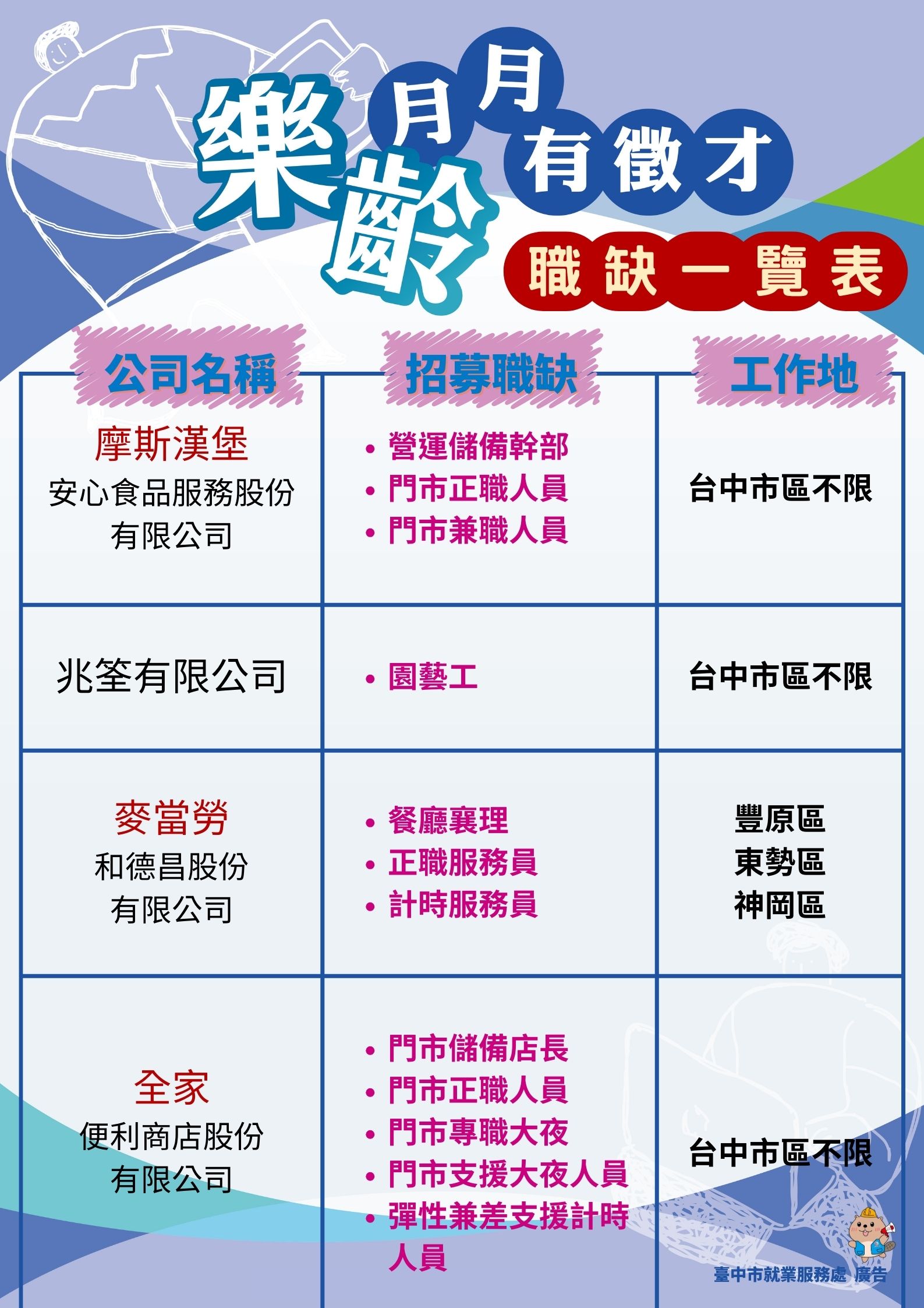 2026「富市台中 就業成功」樂齡就業月月有徵才