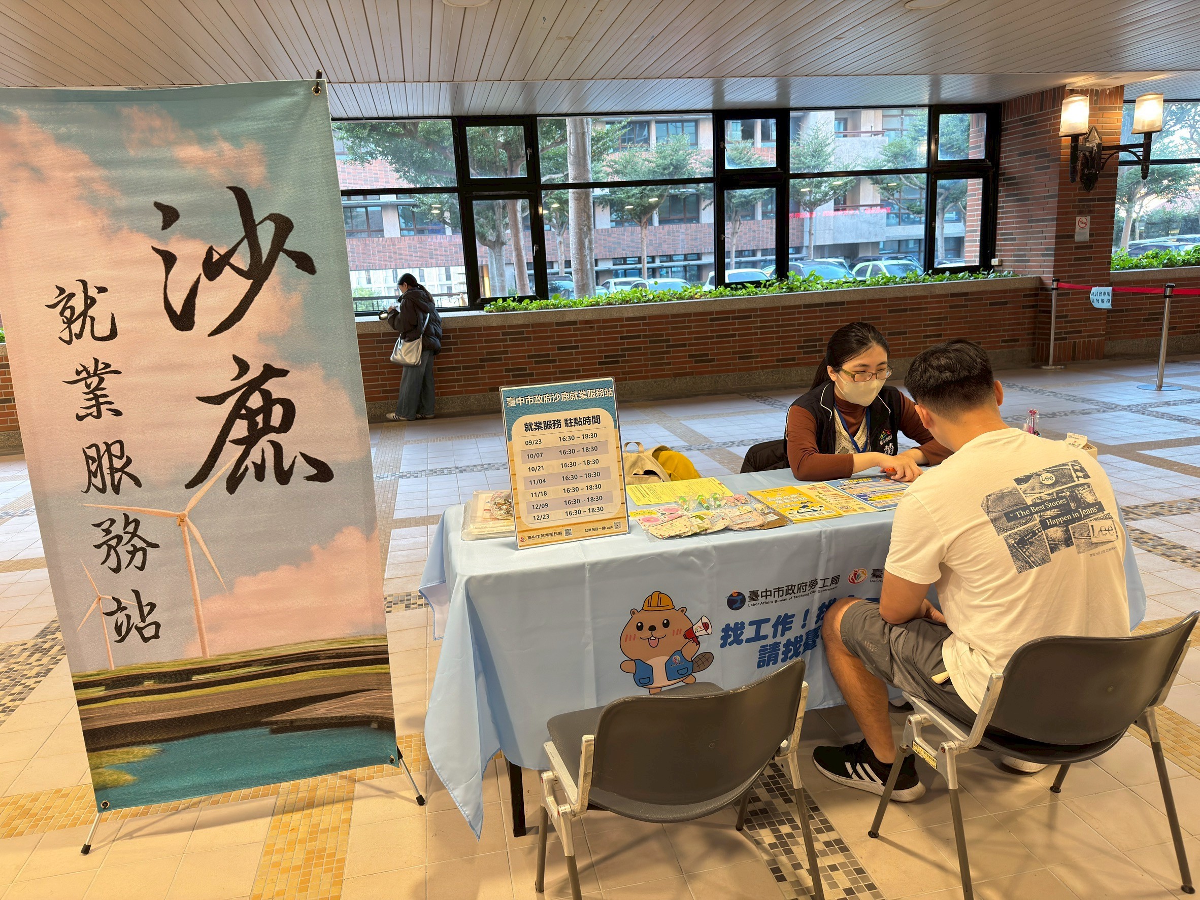 另外在就業媒合方面,勞工局也深耕校園提供客製化服務。例如豐原就業服務站與國立臺灣體育運動大學長期合作,發揮運動城市特色,引進迪卡儂、健身工廠等企業精準徵才;台中就業服務站於修平科技大學導入「XR實境接軌就業」,利用AR穿搭、VR職場體驗及AI面試官,幫助學子減少面試緊張;而沙鹿就業服務站更與弘光科技大學攜手建立駐點諮詢機制,直接將政府就業資源引進校園,並體貼進修部學生的作息需求,將服務時段調整至下午四點半至六點半,確保全校學生都能掌握第一手的就業資訊與補助措施。