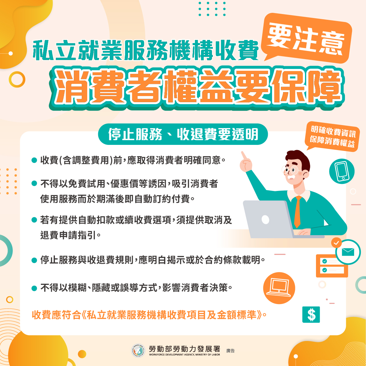「私立就業服務收費注意事項」宣導圖卡
