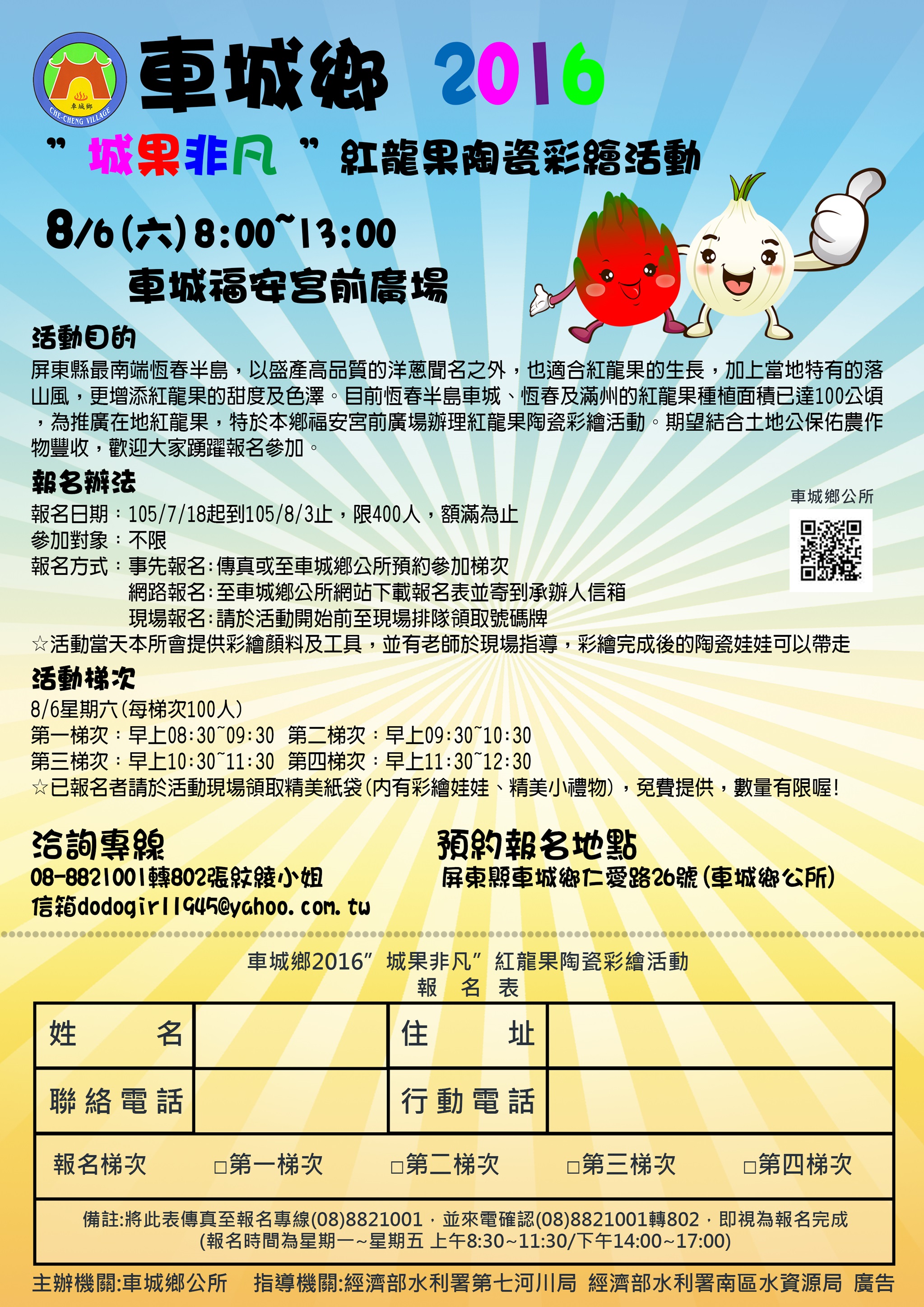 「105年車城鄉城果非凡紅龍果評鑑暨農特產品地產地銷活動」,請踴躍參加!
