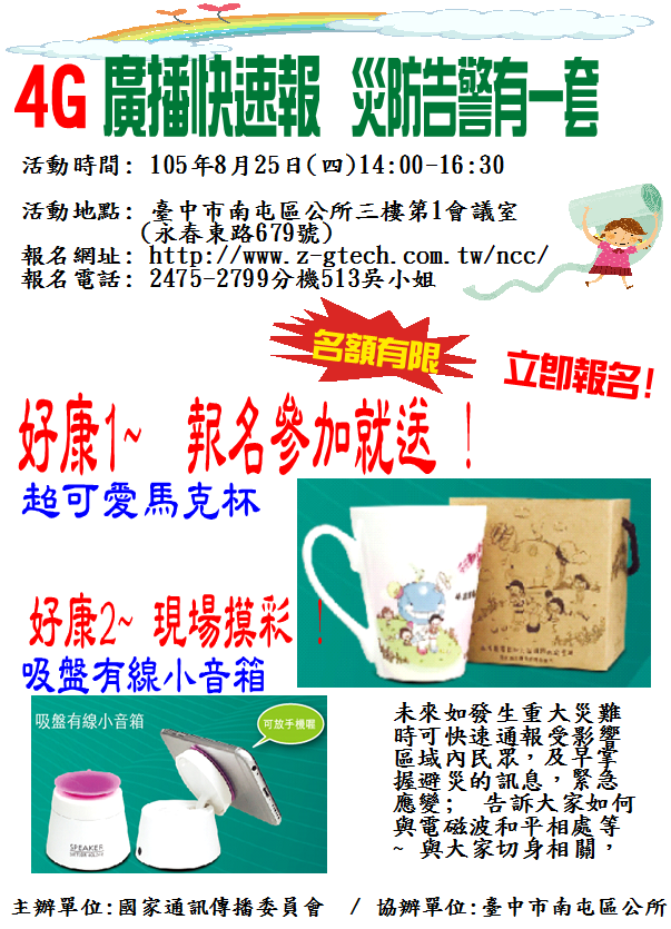 8月25日 -4G廣播快速報 災防告警有一套 ~報名參加就送馬克杯~