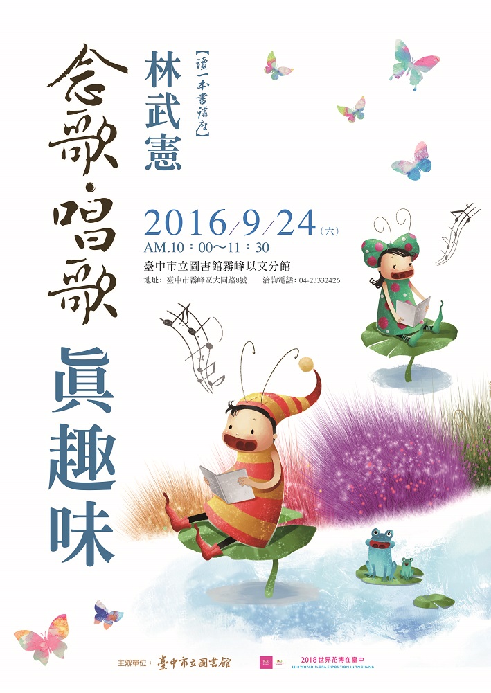 二、旨揭講座邀請兒童文學作家林武憲分享「念歌‧唱歌‧真趣味」。透過講師帶領民眾吟唱傳統歌謠到現代歌謠,從中領略台語文化的奧妙。