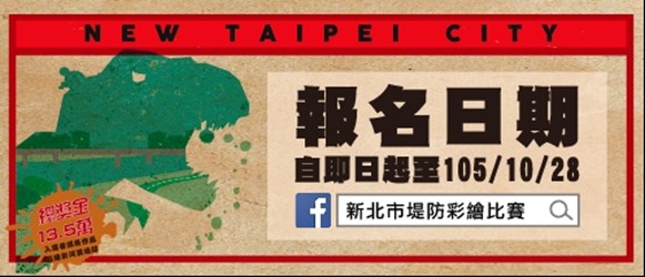 新北市政府高灘地工程管理處辦理「105年度新北市河濱公園-堤防彩繪比賽委託專業」,惠請宣傳請查照!