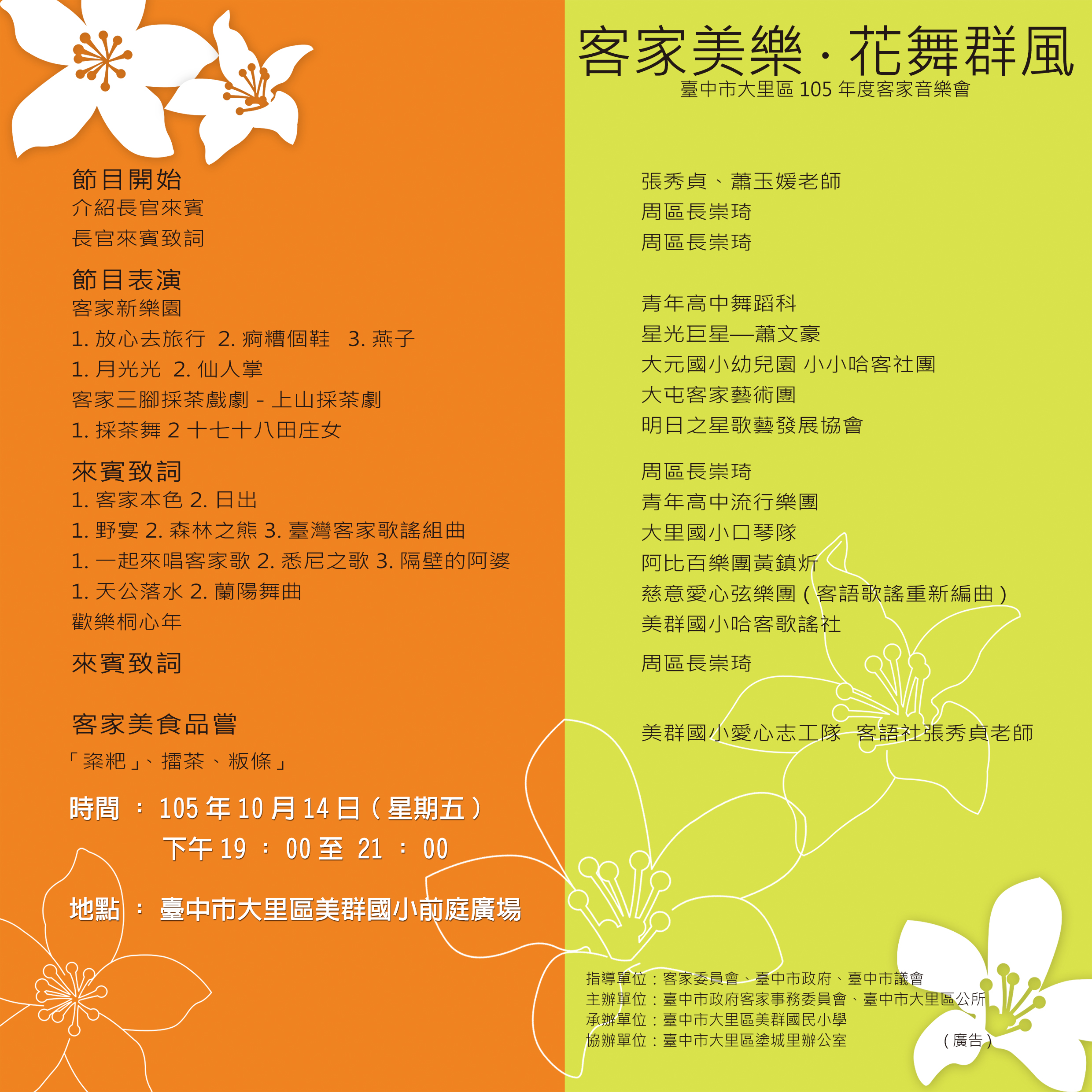 臺中市大里區公所辦理「105年客家音樂會~客家美樂.花舞群風」活動