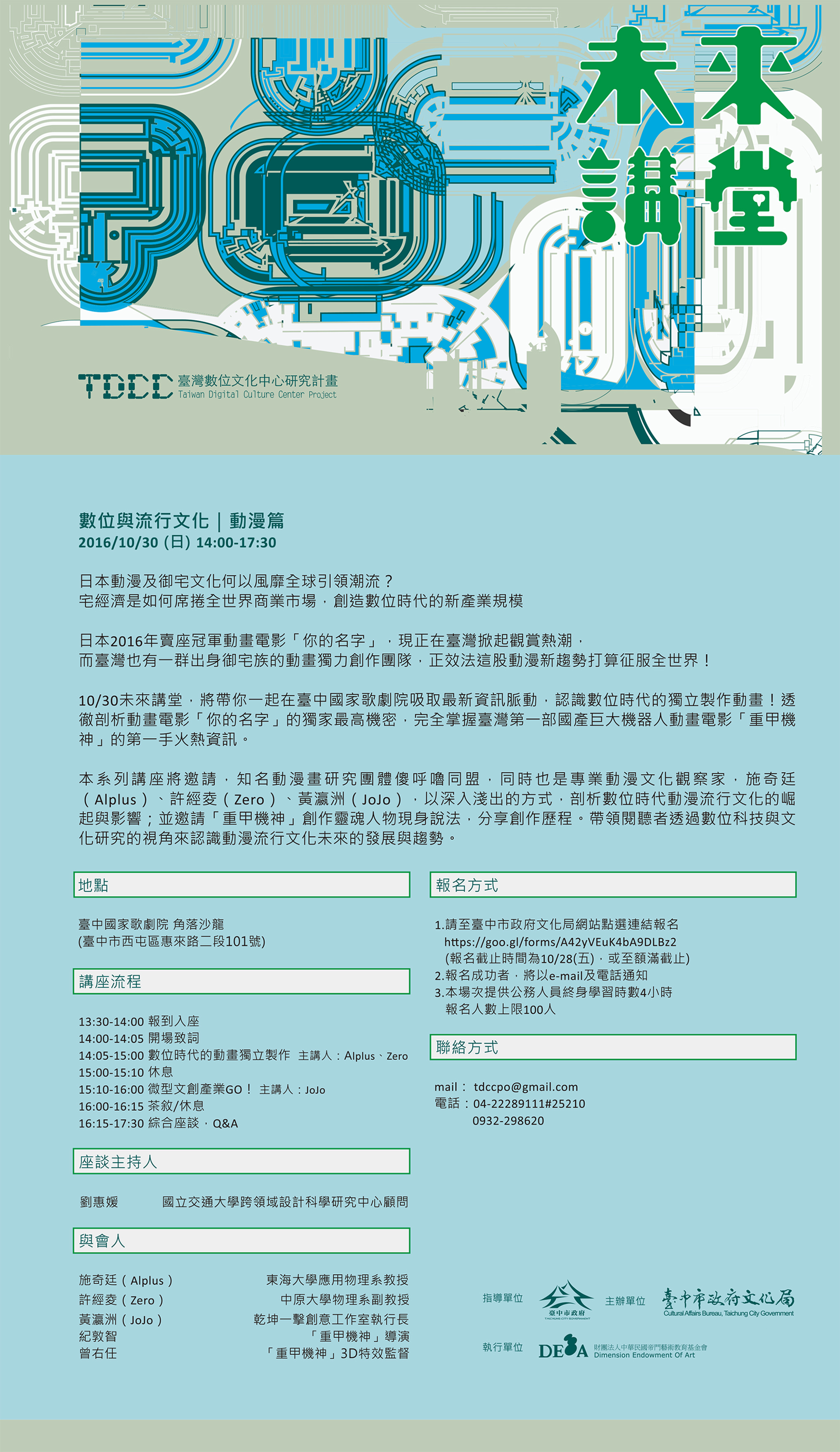 臺中市政府文化局辦理「105年未來講堂─數位與微型產業動漫篇講座」活動