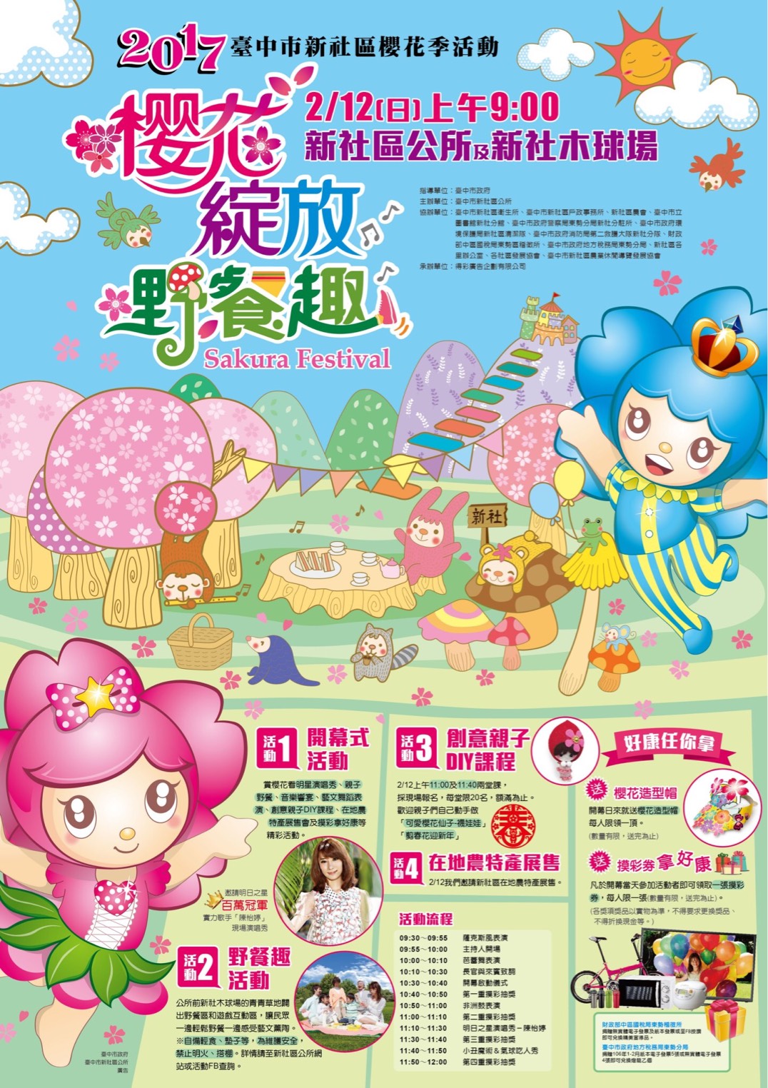 新社區公所訂於106年2月12日(星期日)上午9時至12時舉辦「2017櫻花綻放野餐趣」櫻花季活動,請惠予協助宣傳,並歡迎踴躍參加!