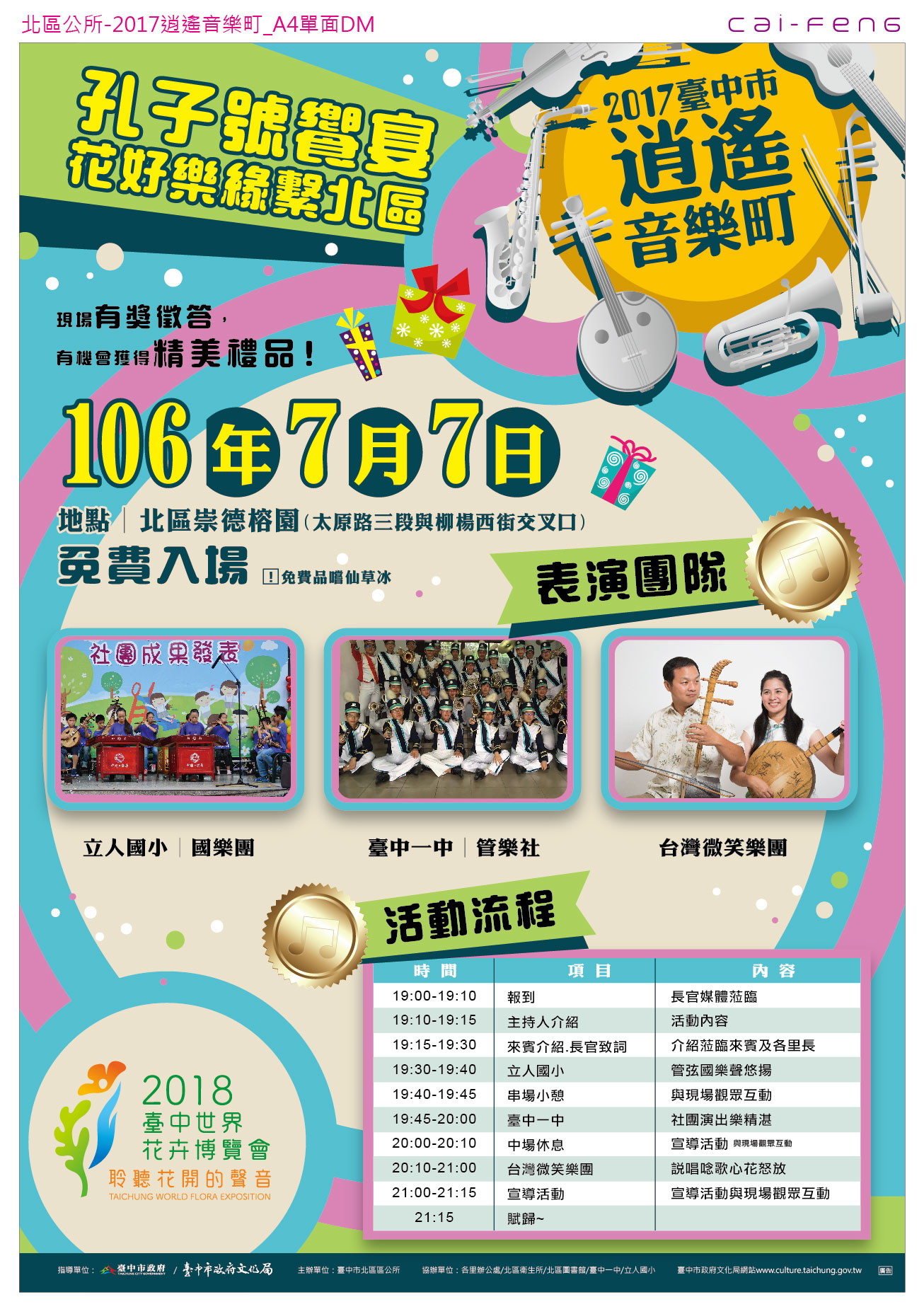 「2017臺中市逍遙音樂町-孔子號饗宴 花好樂(ㄩㄝˋ)緣繫北區」